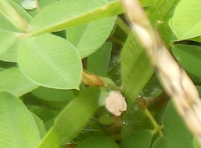葉腋に淡紅紫色で長さ約5ミリの蝶形花が1〜6個咲く。