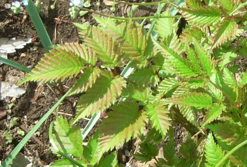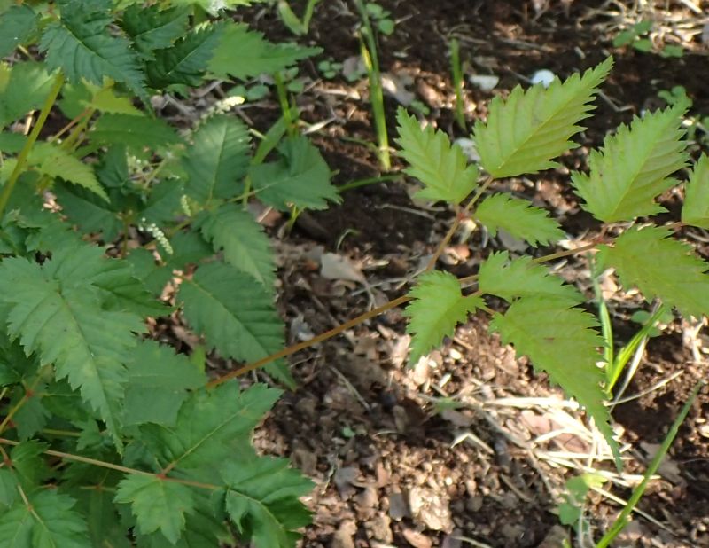 小葉は先のとがった長さ5〜10センチの卵形で、重鋸歯がある。