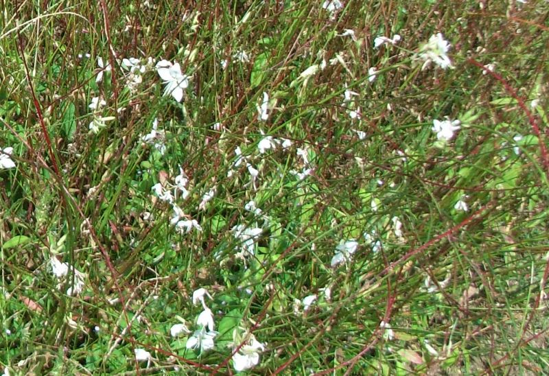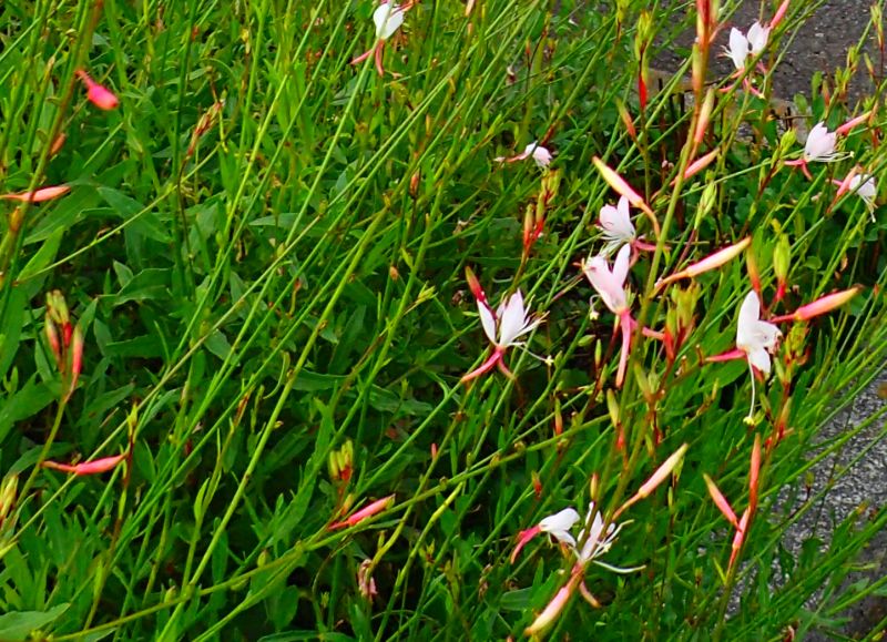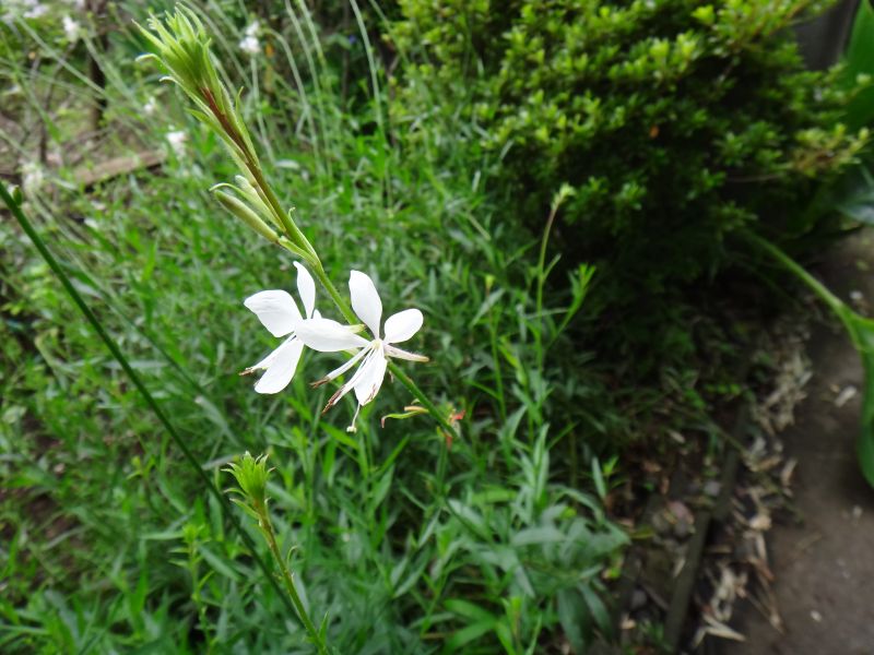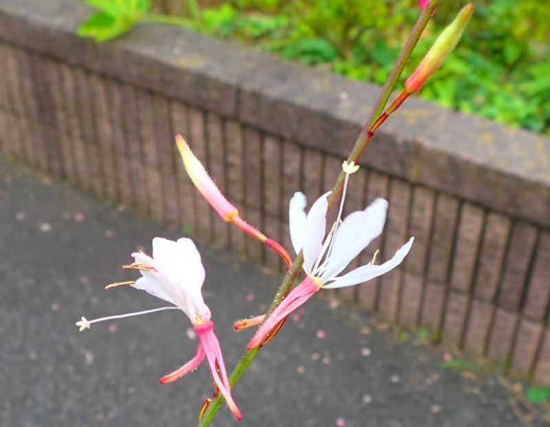 茎先の長い総状花序に直径2〜3センチの白色か桃色の4弁花をつける。