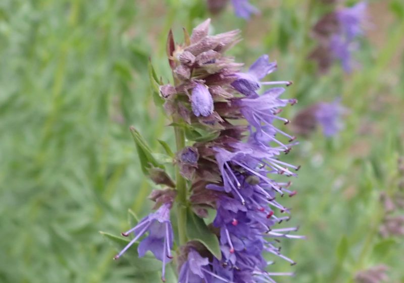 ヤナギハッカ:香気有、高さ40〜60cm、葉は披針形、花はややまばらで淡青紫色、別名ヒソップ。