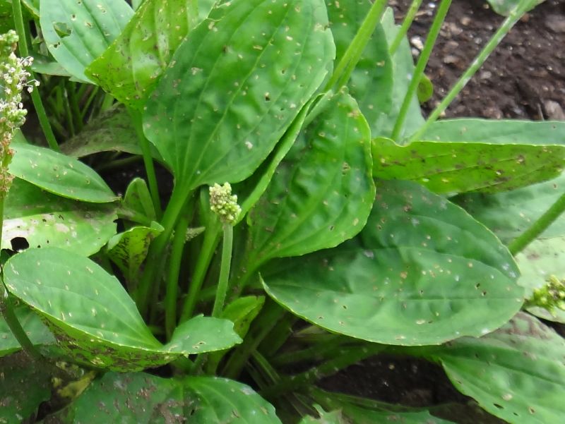 葉は卵形で、葉脈が基部から葉先へと併走する。(2016/9/28)
