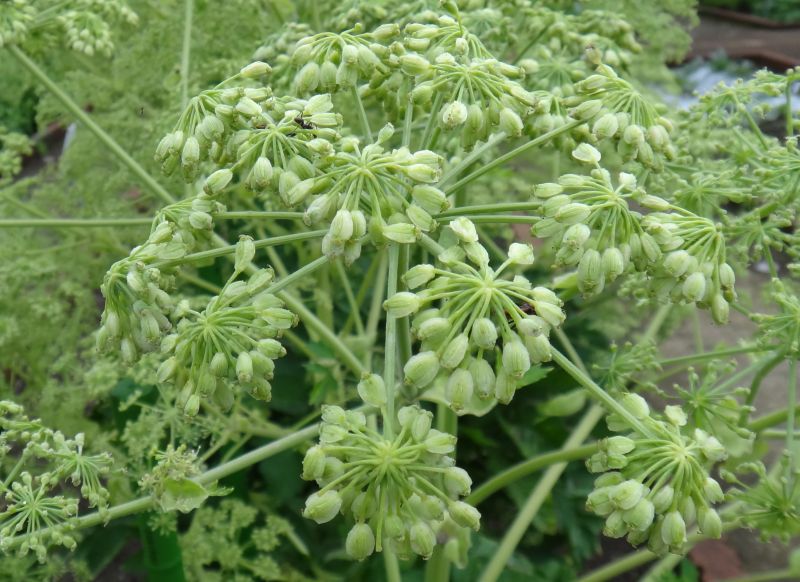 複散形花序に、白い小さい5弁花が多数咲く。(2015/7/2)