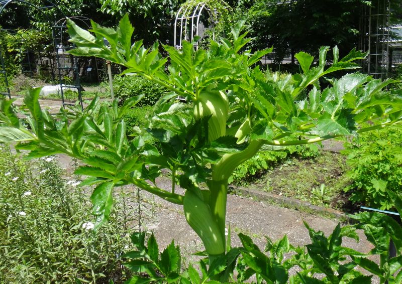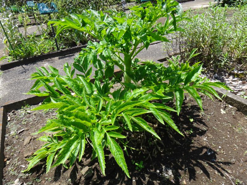 葉は2〜3回羽状複葉で、小葉には粗い鋸歯がある。(2015/9/29)