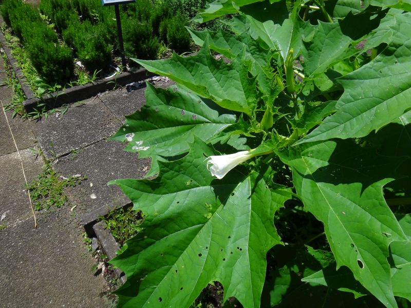 花の白いのは、シロバナヨウシュチョウセンアサガオと呼ばれ、