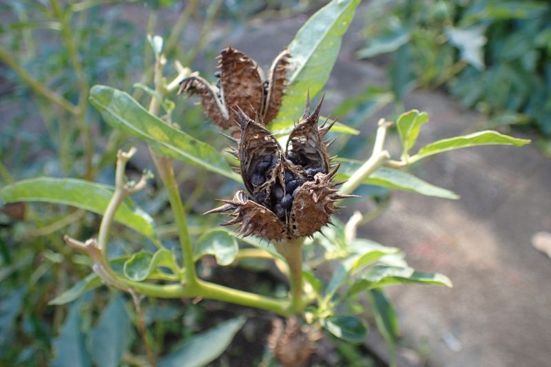 果実が深く4裂したシロバナヨウシュチョウセンアサガオ。