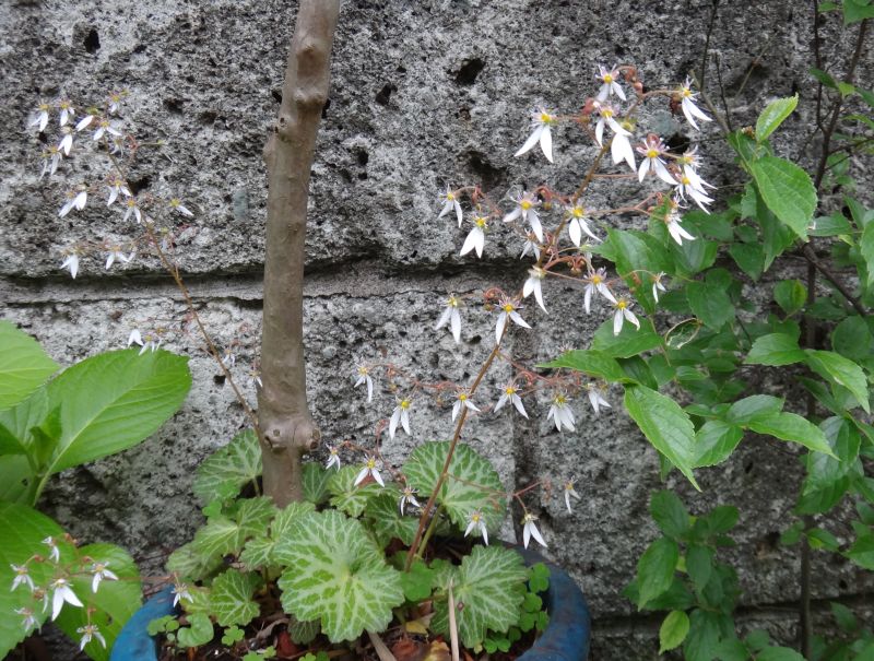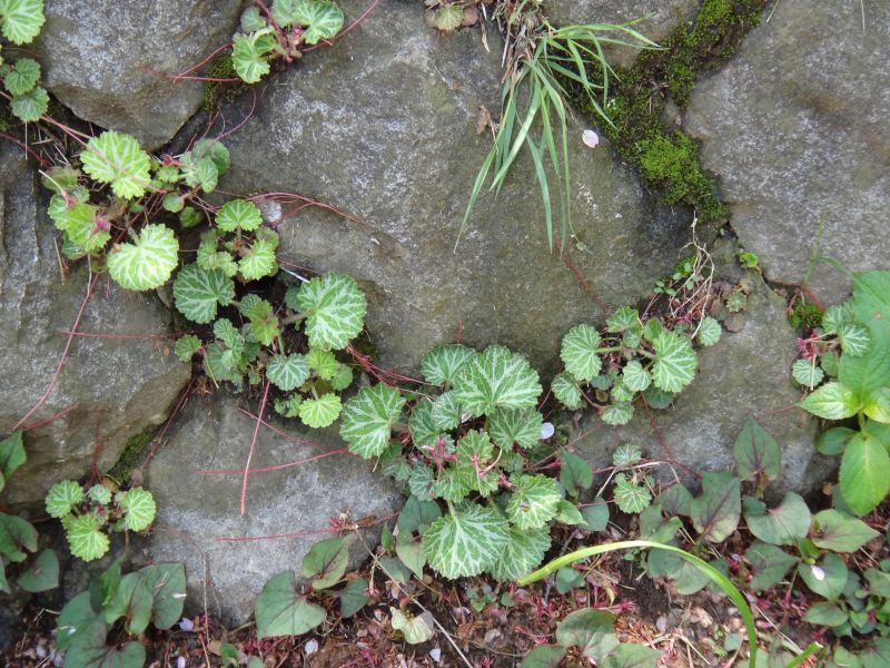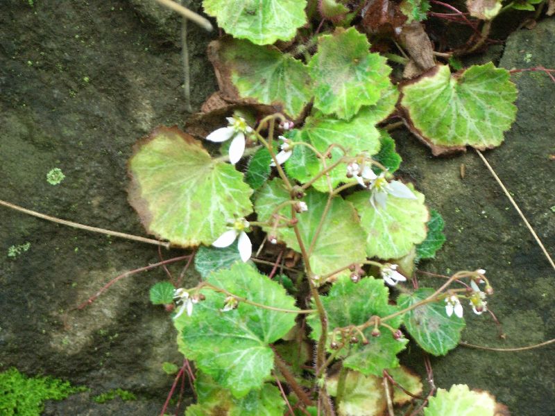 ユキノシタ属、常緑、耐寒性宿根草。