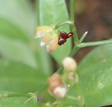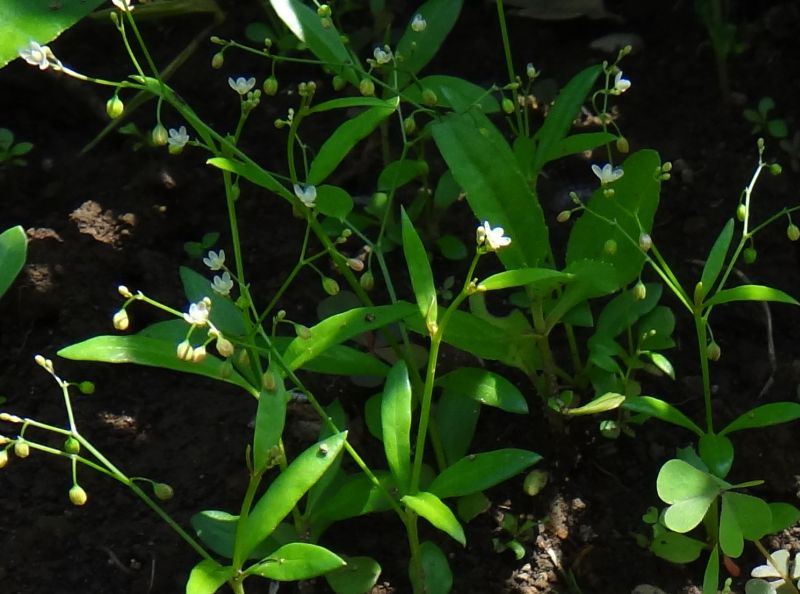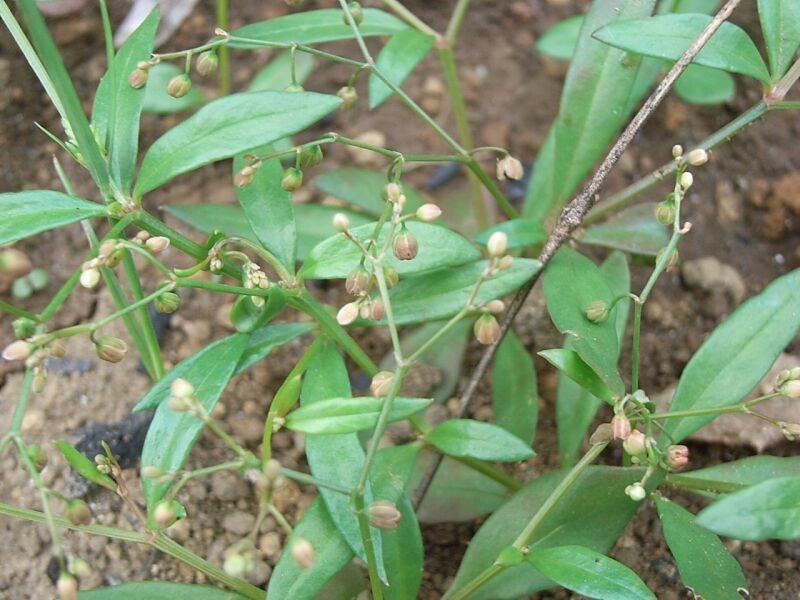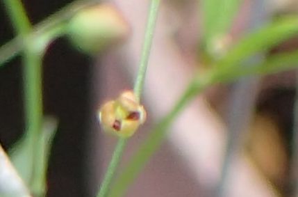 花は直径約3ミリで、葉腋から出る花柄にまばらな集散状につき、