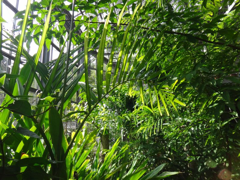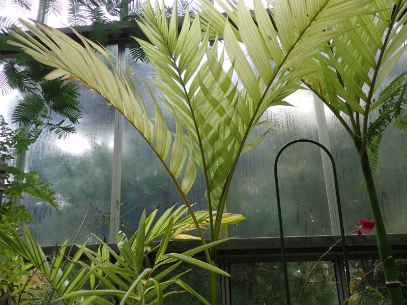 葉柄のある長さ1〜2メートルの羽状複葉が幹の頂部分に螺旋状につき、