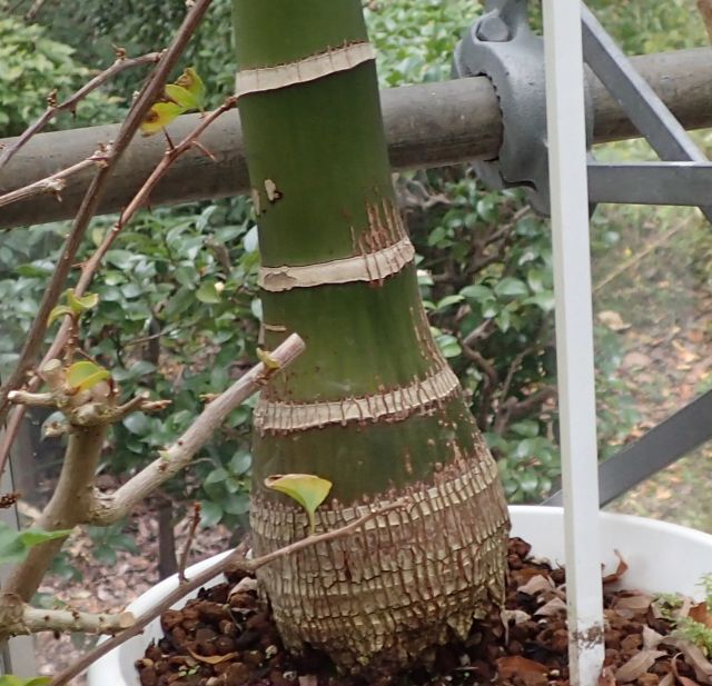 幹は平滑な円柱で、分枝しないで直立し、葉痕の輪が節のように残る。