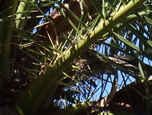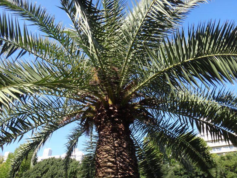 4メートルぐらいの大きな羽状複葉が頂部につく。(その下方にあるのは別の植物)