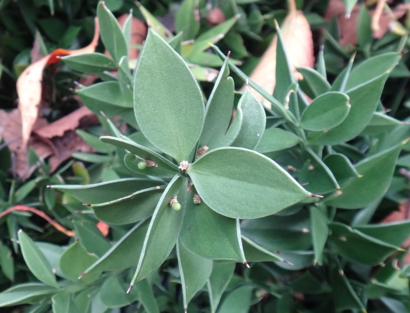 葉のように見えるのは末端の枝が葉のような形に変化した葉状枝であり、