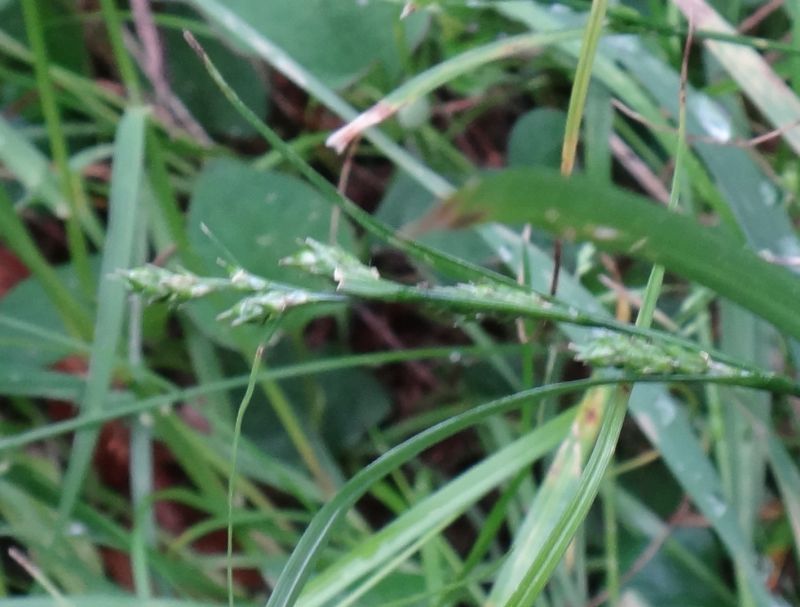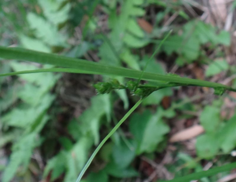 クサスゲ:葉は茎より長い、雄性の頂小穂は淡緑色で0.5〜1センチ、果胞は無毛。