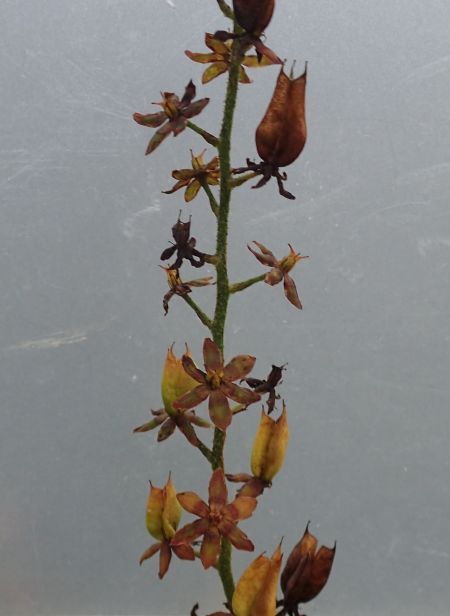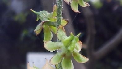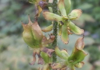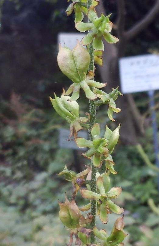 長い花茎に、3稜があって角(ツノ)のある刮ハが並ぶ。(2017/10/18)
