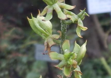 高く伸びる花茎に黄緑色の花が並ぶ。(2016/10/20)