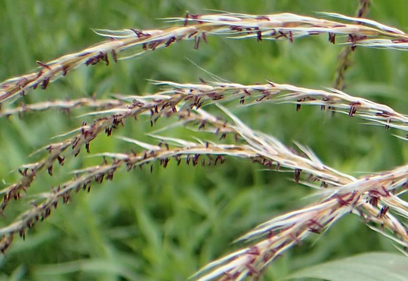 淡紫色の小穂を密につける。花序の先は少し垂れる。