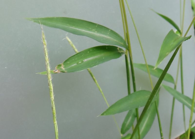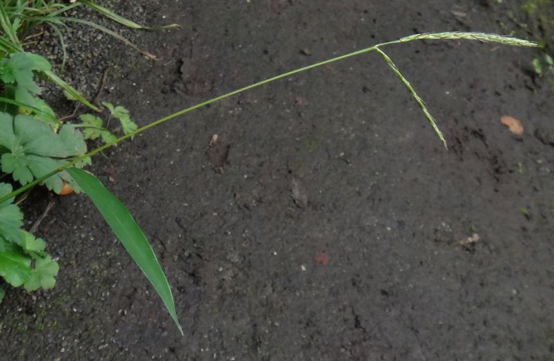 アシボソ :葉は披針形で、花序枝が1〜3本、小穂に芒あり。