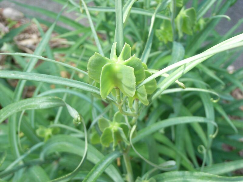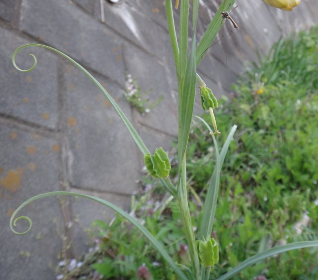 上部の葉は細くて、先が鉤状に曲がる。(2015/5/1)