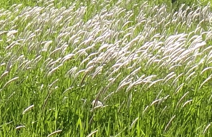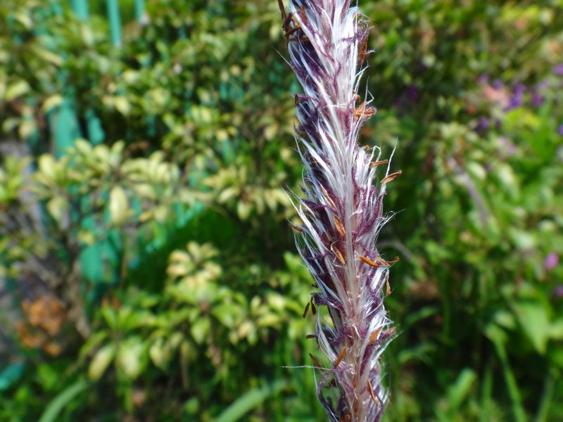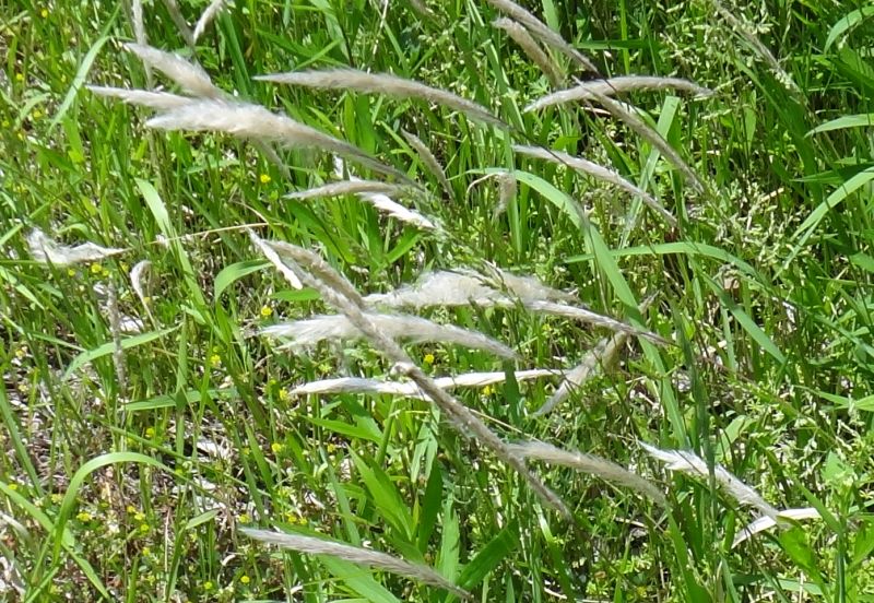 小穂の基部に長さ1.2センチくらいの絹のような毛が密生し、