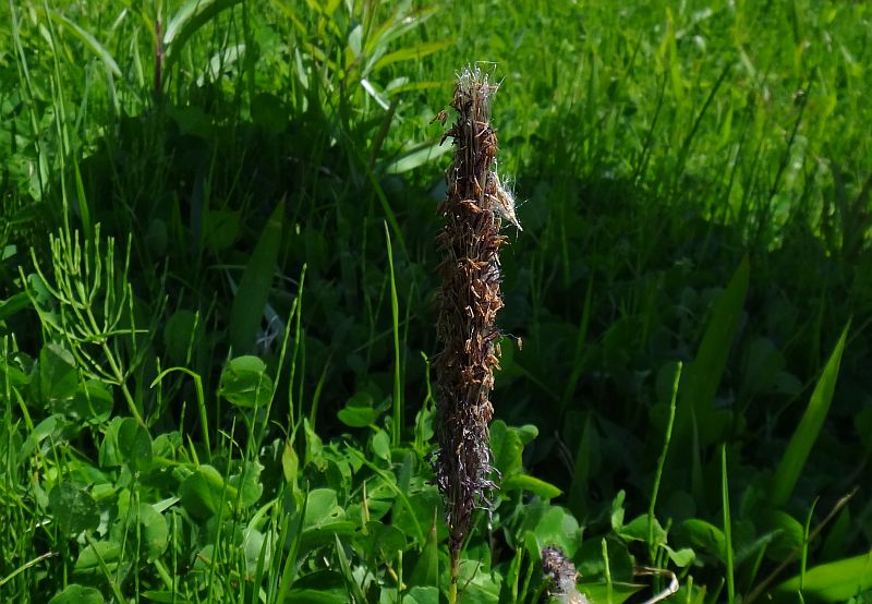 花序は長さ10〜20センチの円柱状で、葉より高くのび、