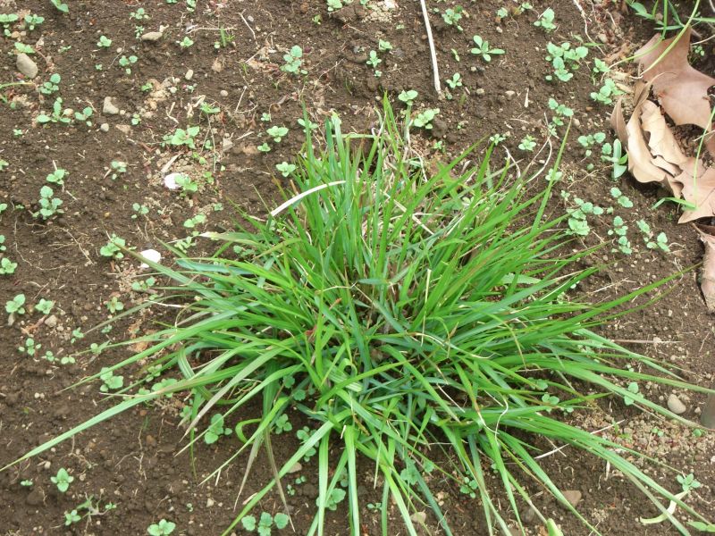 葉は長さ30〜70センチの線形で根もとから生え、表面がざらつく。