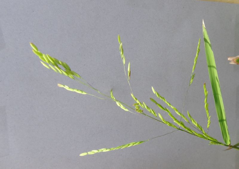 互生して斜上する花序枝の上部に長さ4〜6ミリの小穂が並ぶ。