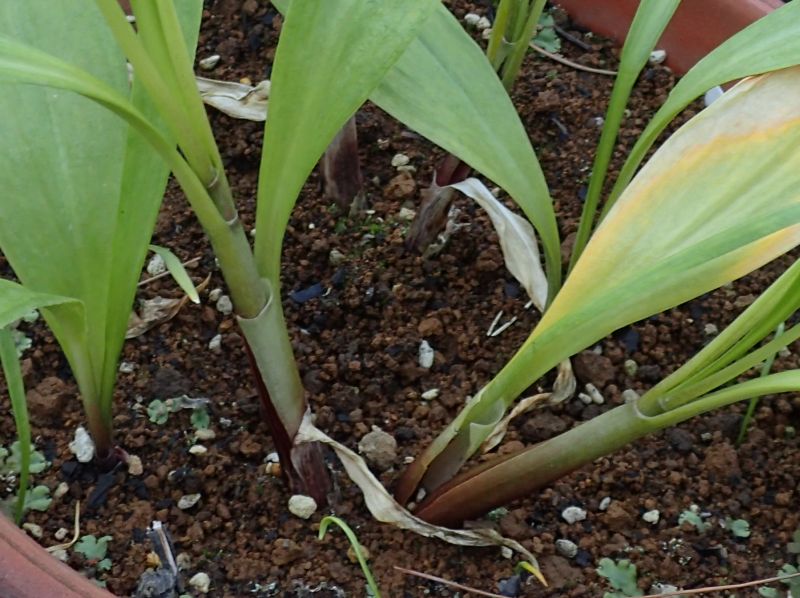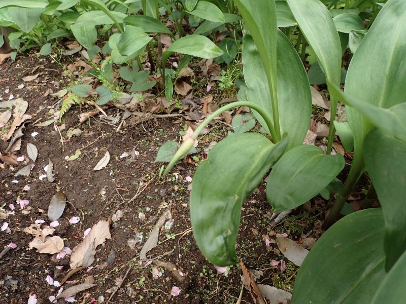 尖った長楕円形の葉が2〜3枚根生し、長さが20〜30センチある。