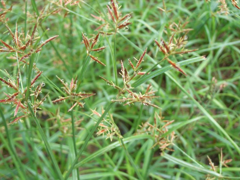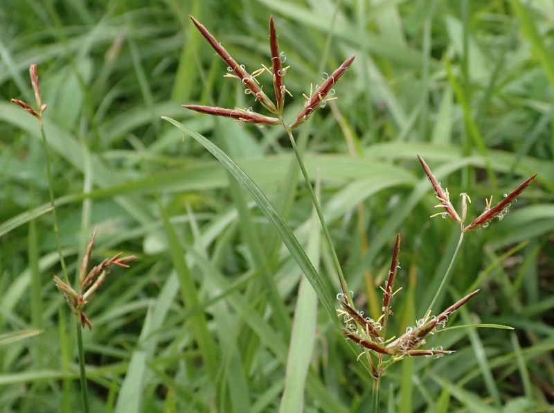 花序枝の先に赤褐色の小穂が3〜8個開出する。