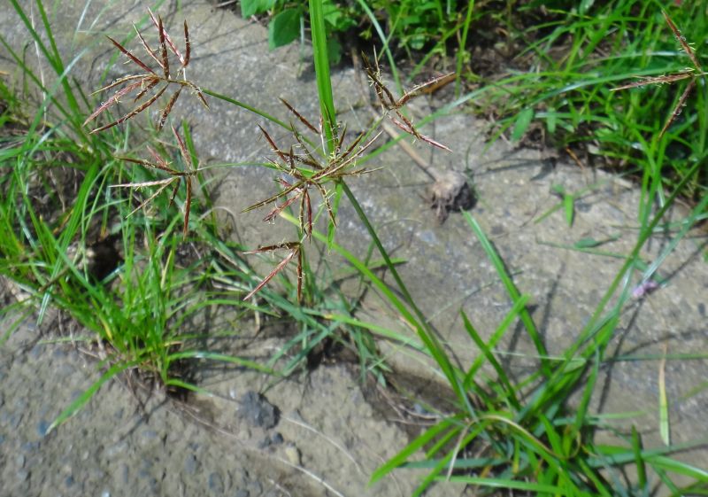 茎先から長い苞を1〜2本と、小穂のついた花序枝を数本出す。(2016/9/17)