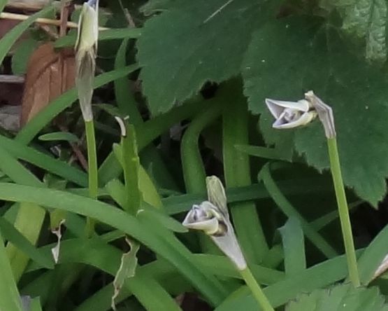 花筒は紫色を帯びる。葉は線形で、少しよじれる。(2016/3/18)