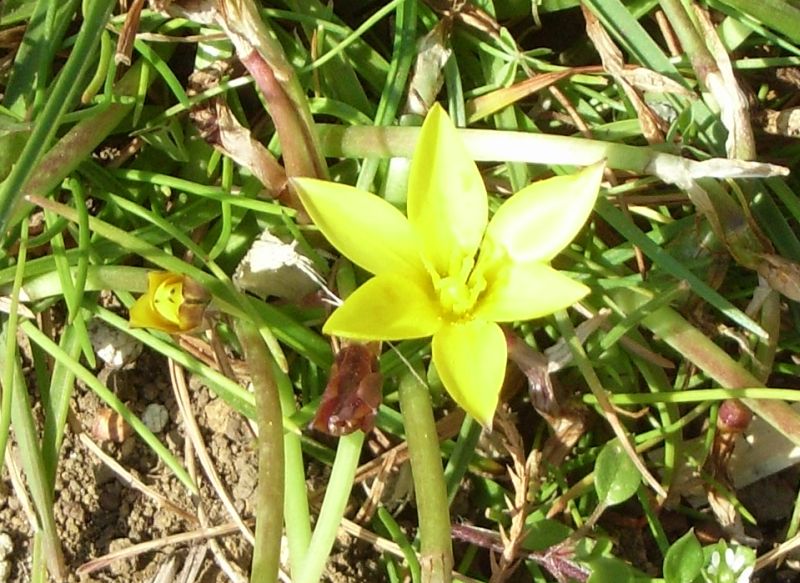 花は6弁で、中央部の雄しべが黄色い。