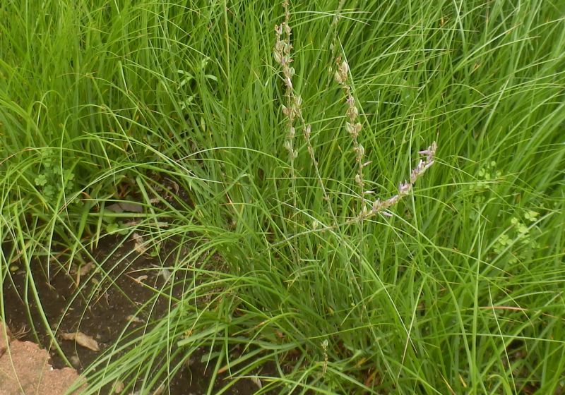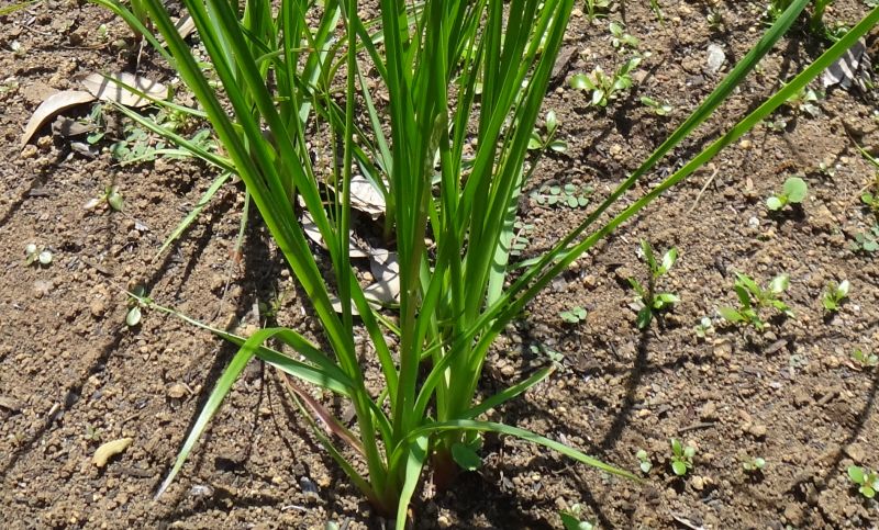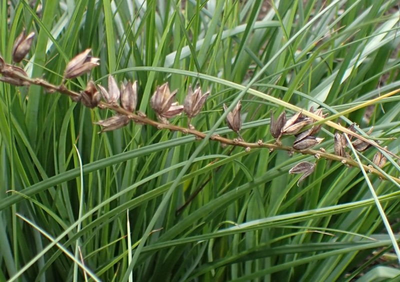 スゲのような幅約5ミリ長さ30〜70センチの柔らかい葉が多数根際から生える。