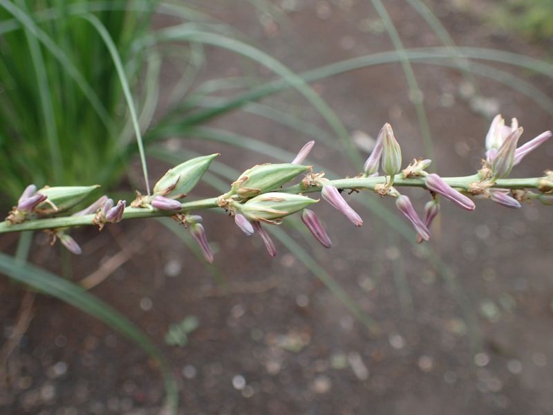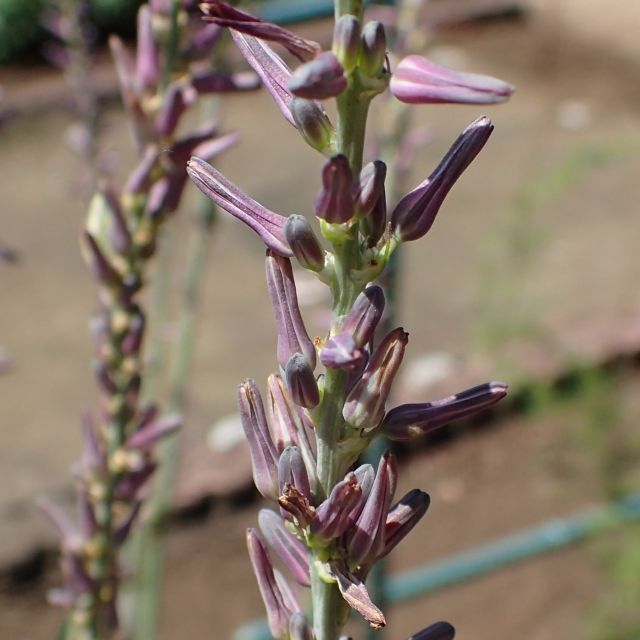 初夏に花径が直立し、淡紫色〜淡黄色の筒状の花が穂状に咲く。