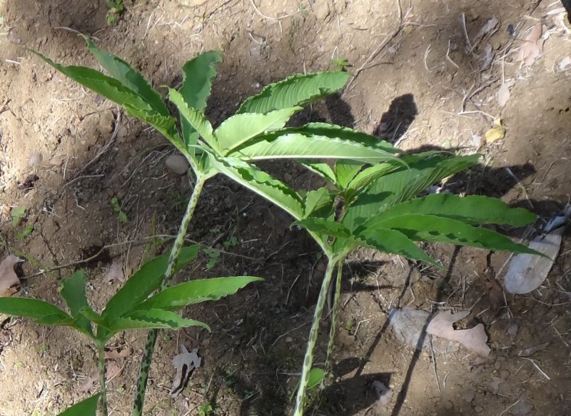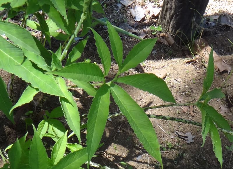 鳥足状複葉の小葉は細長い披針形で、波状の鋸歯がある。