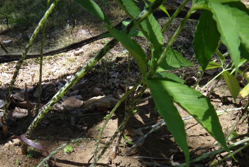 初夏に斑模様のある仏炎苞を出し、肉穂花序をのばす。