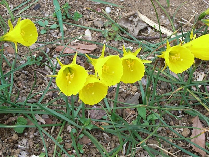葉は細く、早春にらっぱ状の黄色い花が単生する
