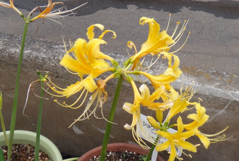 ヒガンバナに似ているが、花が黄色くて花弁が波打つ点などが異なる
