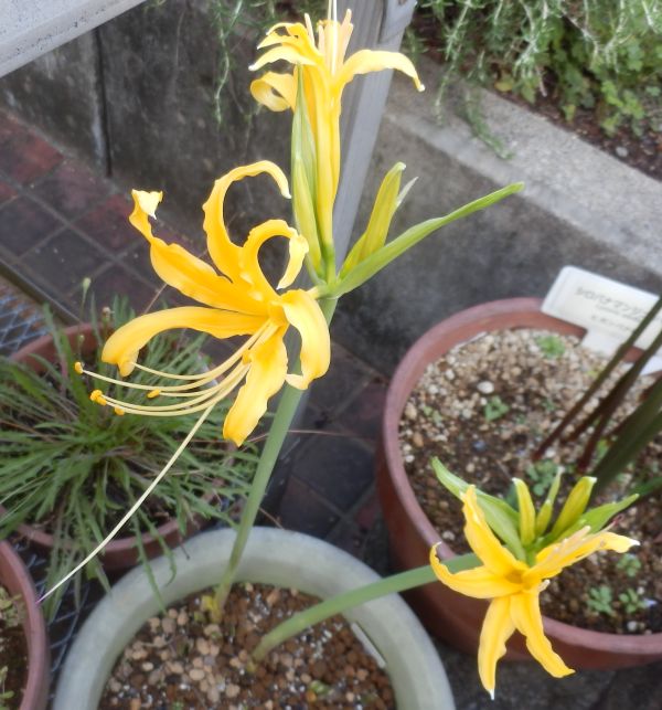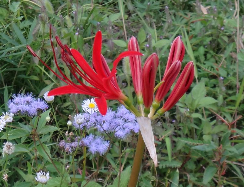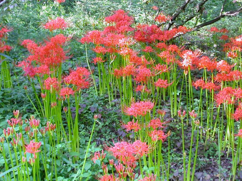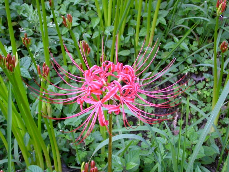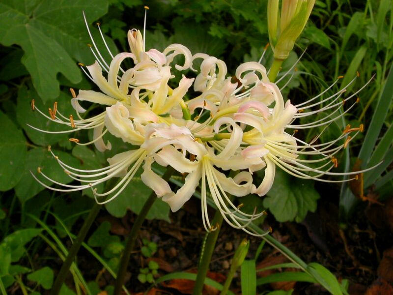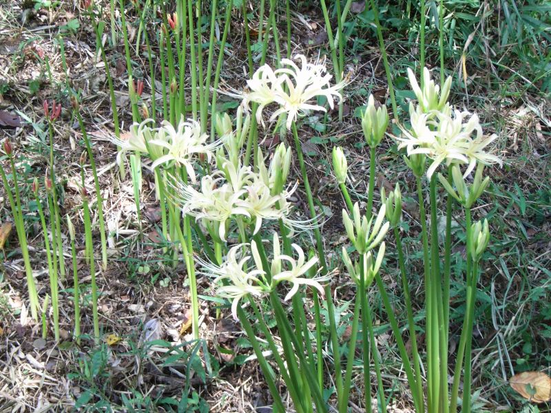 白い花もある。ヒガンバナとショウキズイセンの交配種と言われる。