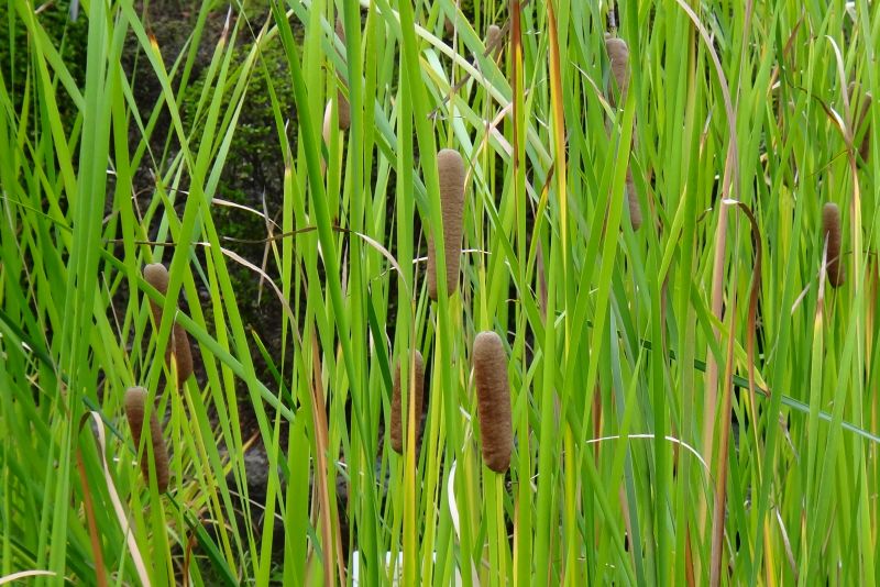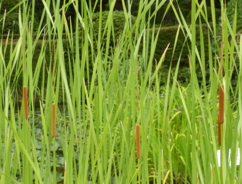 ガマ属、湿地植物、多年草。