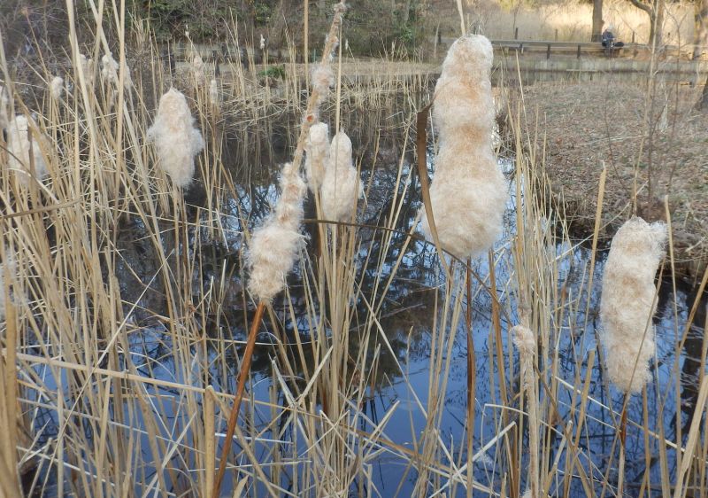 種子は小さい堅果で、長い白毛があって、風で飛ぶ。