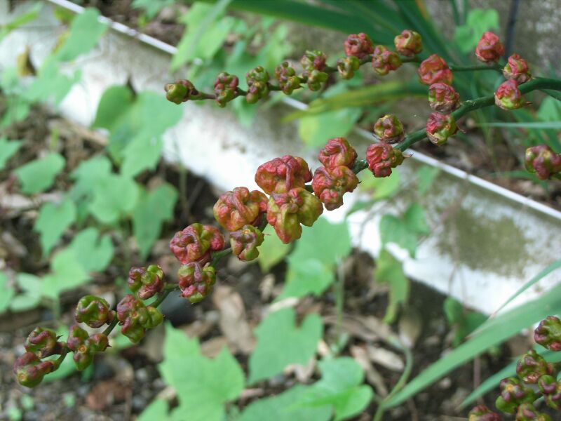 つぶれて凹凸のある干しぶどうのような形の果実(刮ハ?)ができるが、