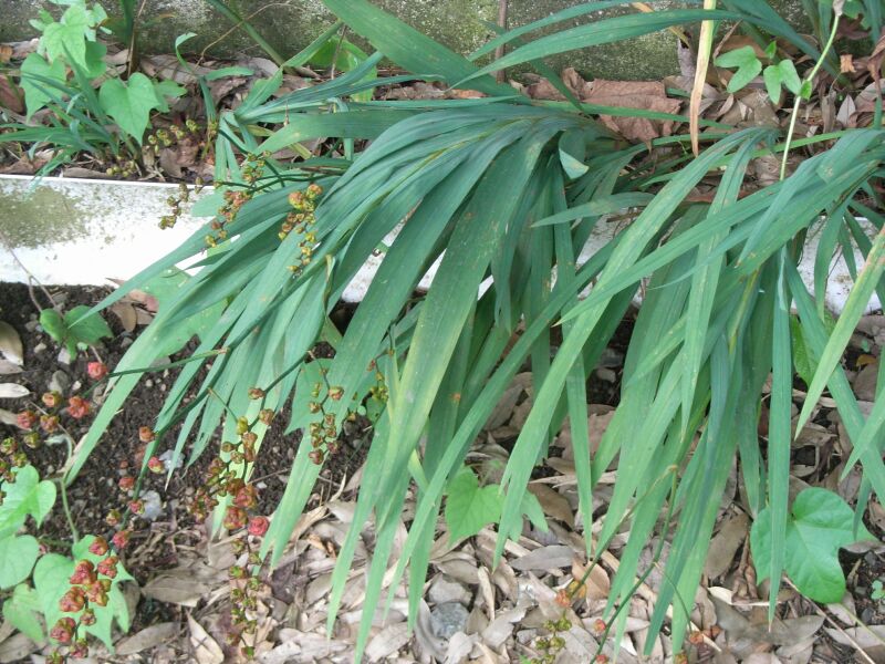 偏球形の根茎から地下茎を横にのばして、球茎を作りながらふえる。