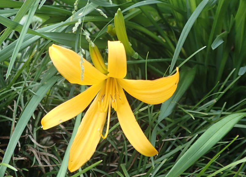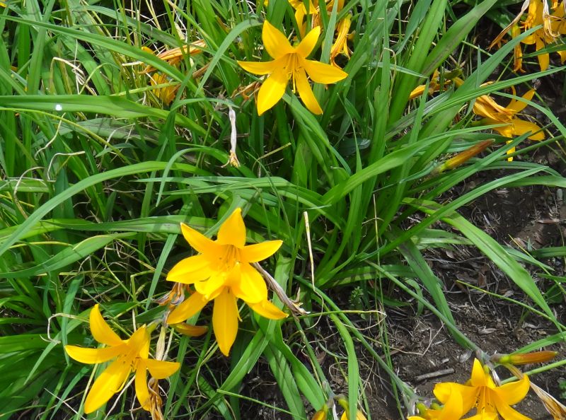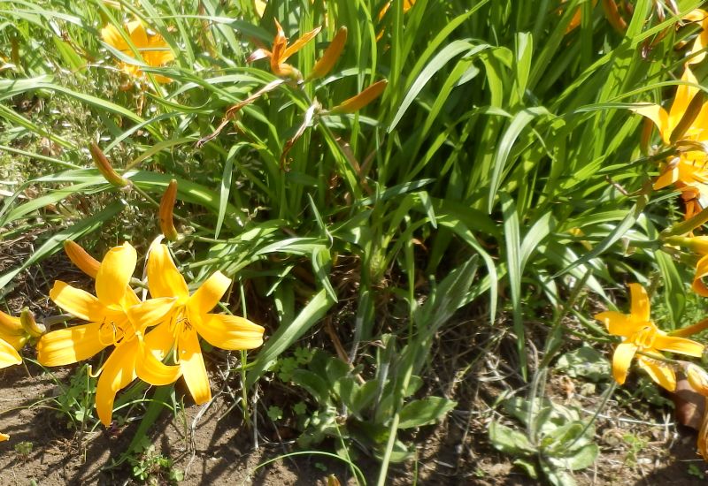 ヒメカンゾウ:夏緑、黄橙、一重、5〜6月、朝咲く、小さい。