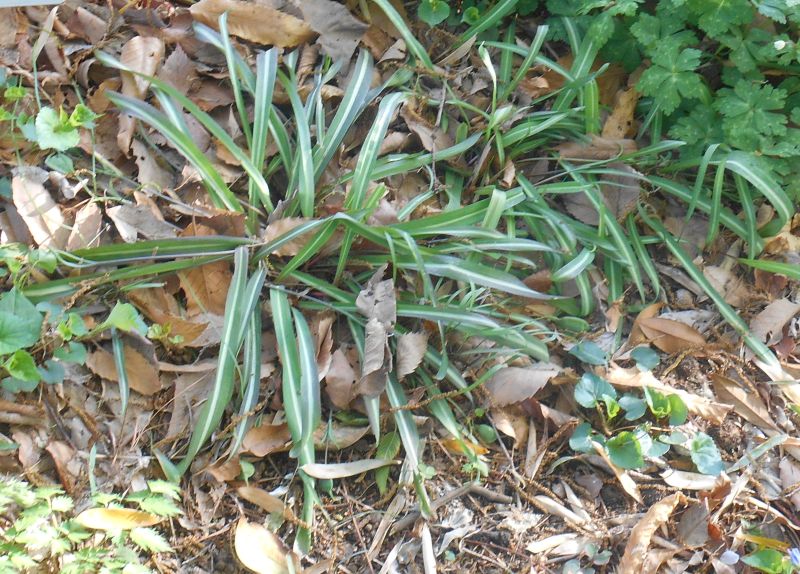 葉には中脈沿いに白い帯がある。(2016/4/15)