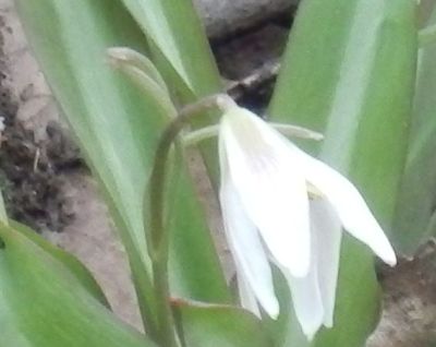 丸い鱗茎があり、茎が地中でのび、地表で2枚の葉を出すので、