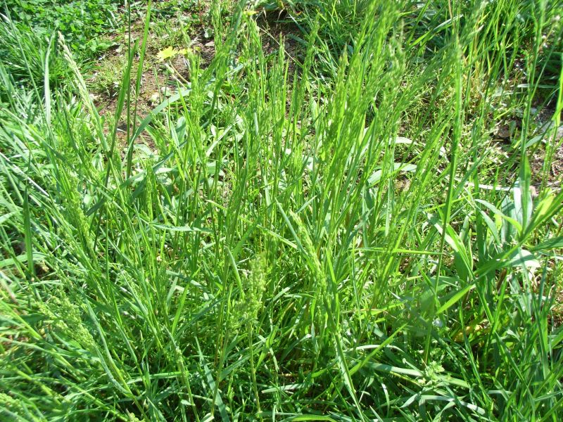 まもなく花序枝が斜め上に開き、淡緑色の小穂をつける。