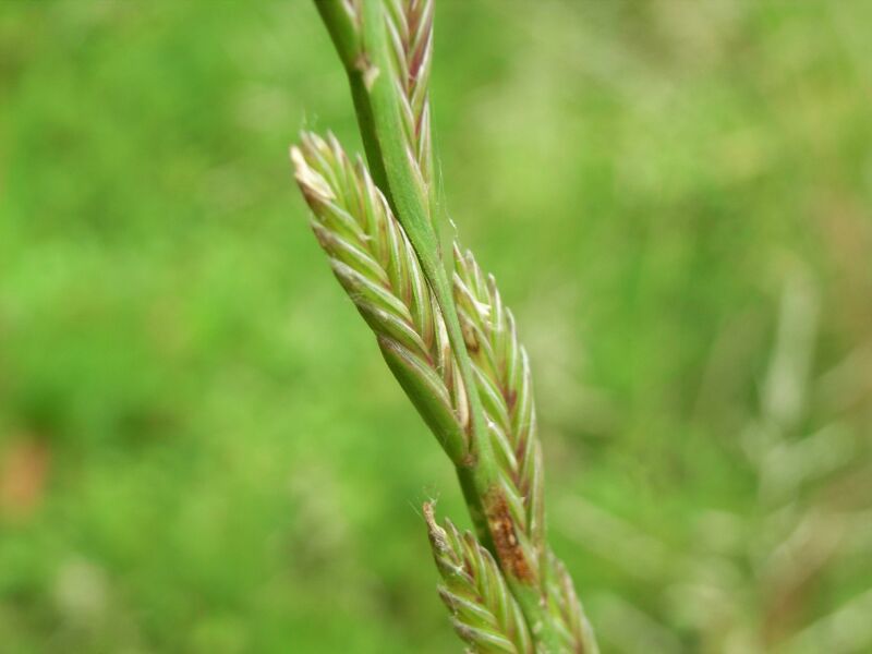 緑色で柄のない扁平な小穂を交互につける。