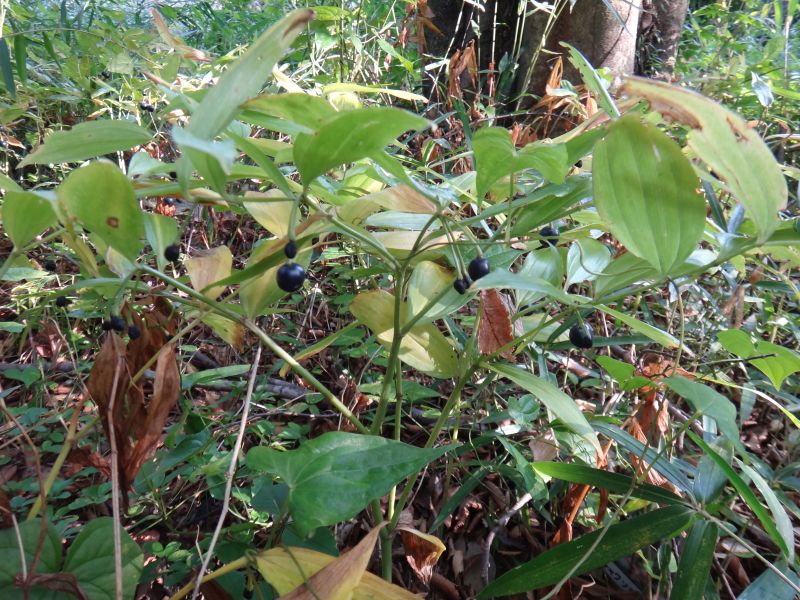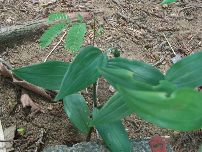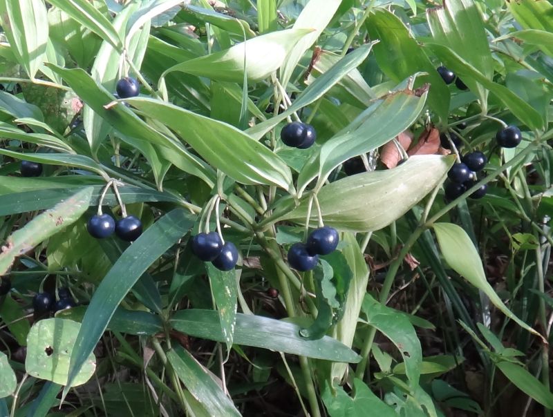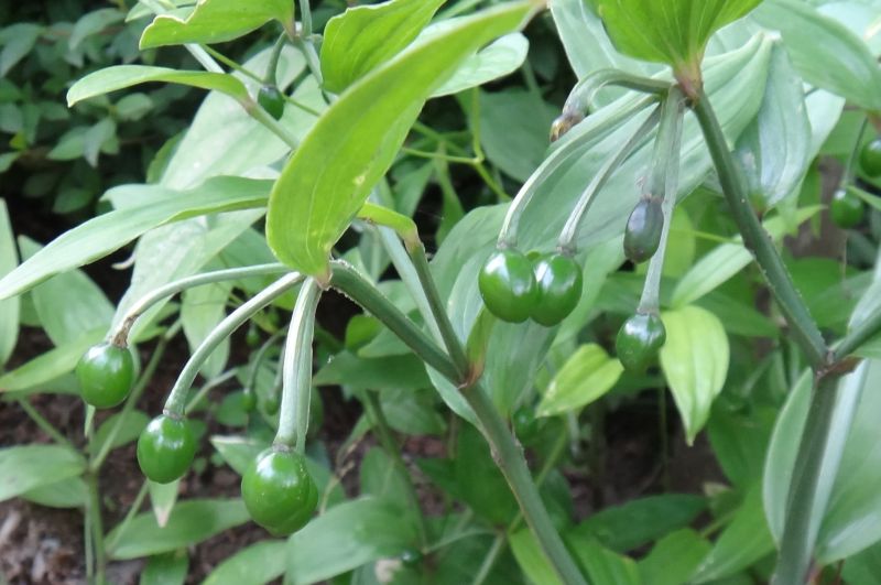マルバオウセイ:ナルコユリと似ているが、葉が幅広の長卵形で、葉裏で脈が盛り上がる。