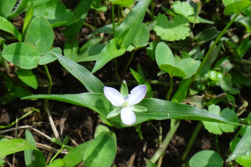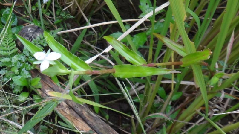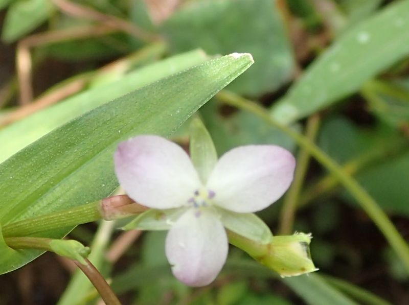 葉は狭披針形で、花弁3枚、萼片3枚の花が咲く。(2016/9/17)