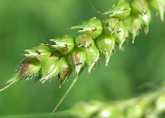 イヌビエ :小穂は約3〜4ミリで緑色、芒はないかあっても短い。