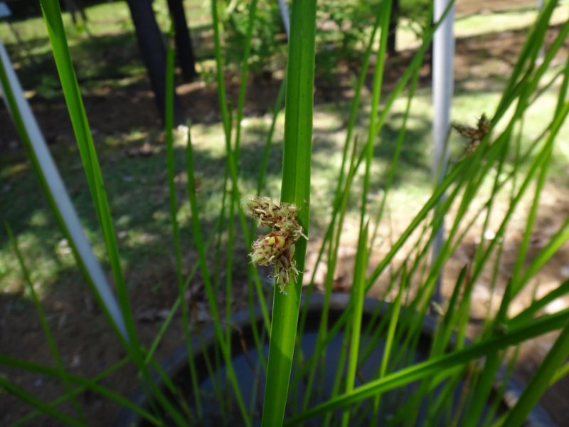 茎には鈍い3稜があり、濃緑色で、叢生して大きな株をつくる。